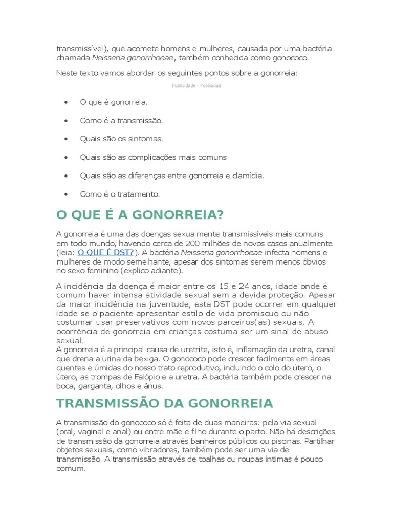 Gonorreias Tempo De Cura.